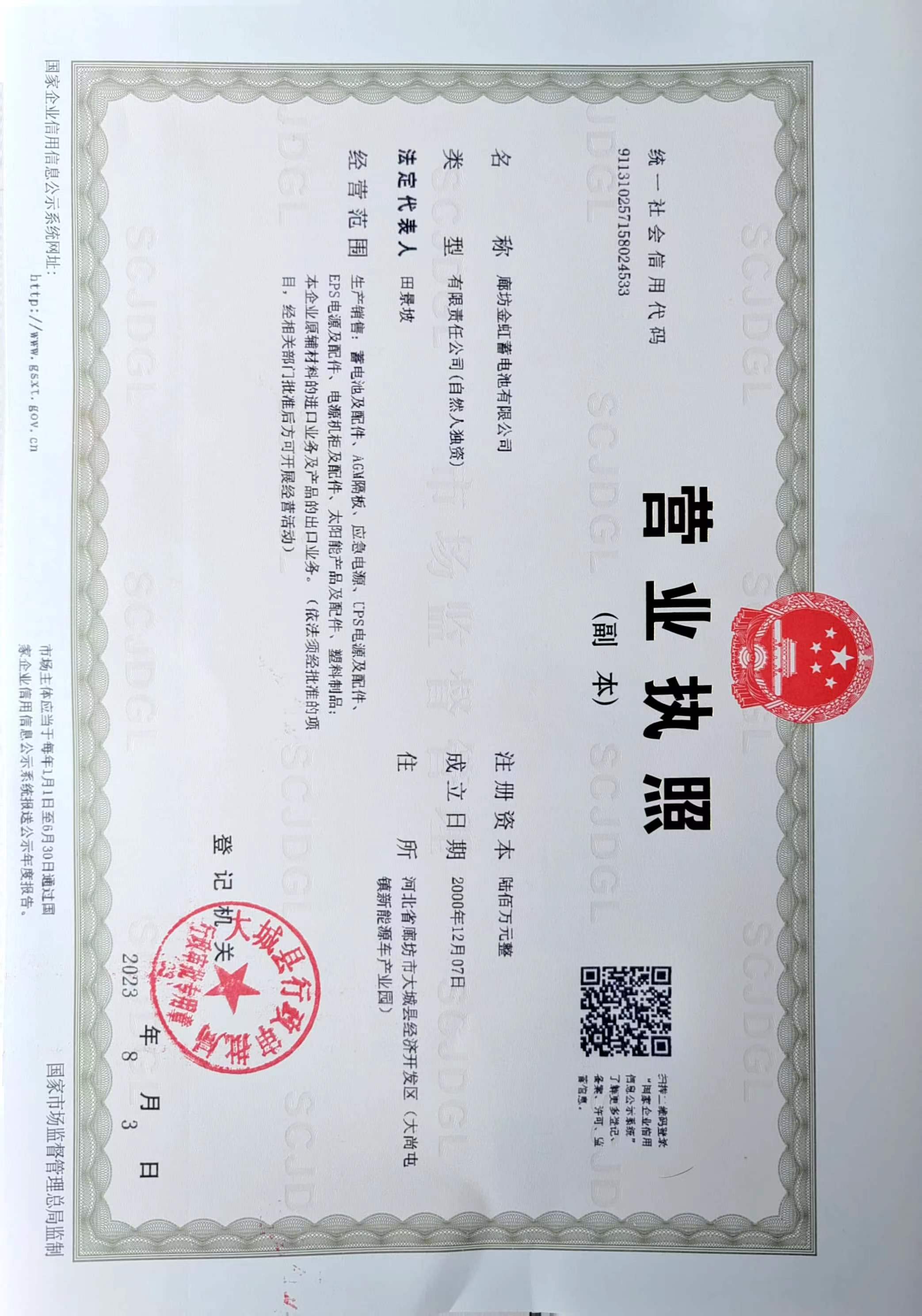1. ?廊坊金虹蓄電池有限公司